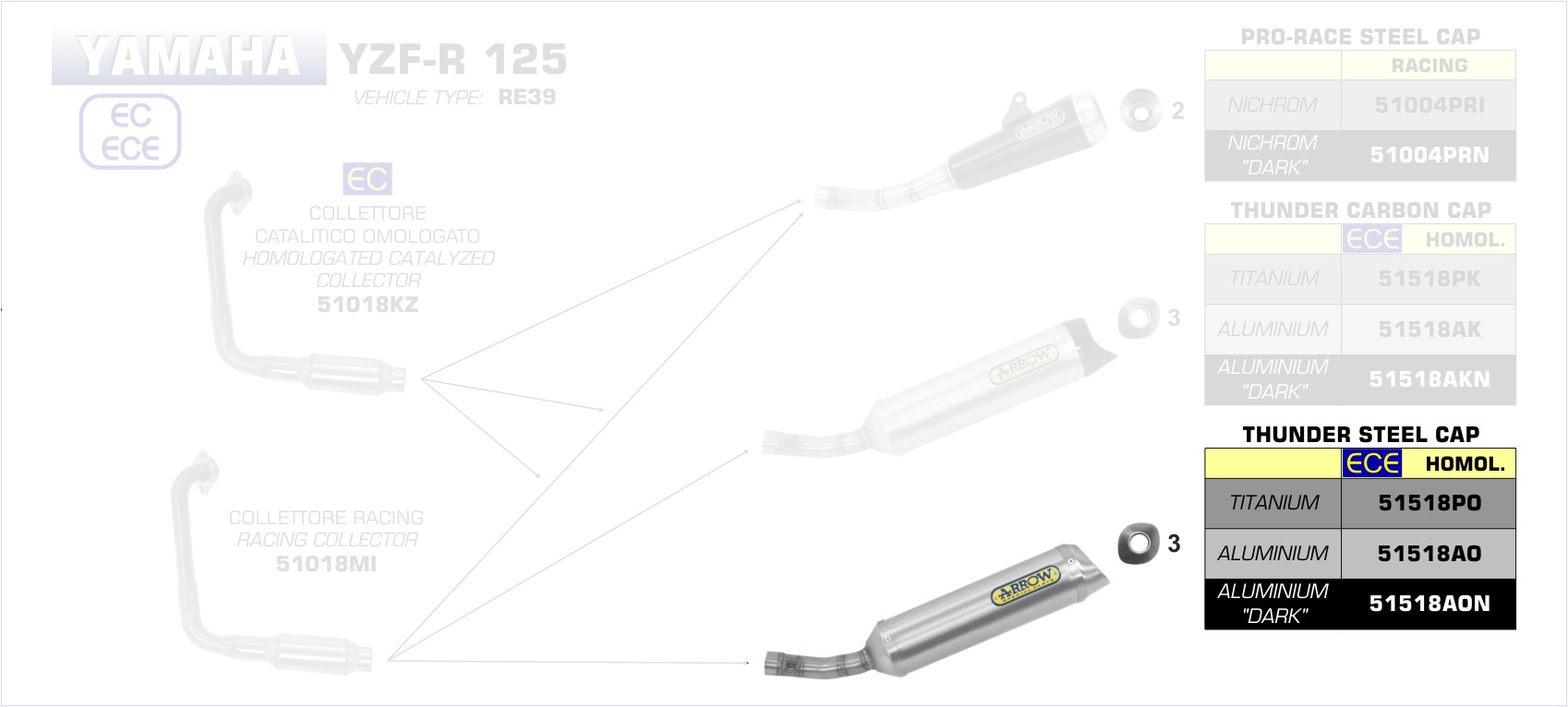 Sonstiges zum Artikel "ARROW Street Thunder Aluminium Dark Yamaha YZF-R 125 19-21/MT 125 20-"