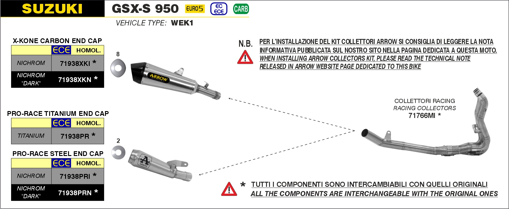 Sonstiges zum Artikel "ARROW X-Kone Edelstahl schwarz Suzuki GSX-S 1000-GT-GSX-S 950 21-23-GSX-S 1000"