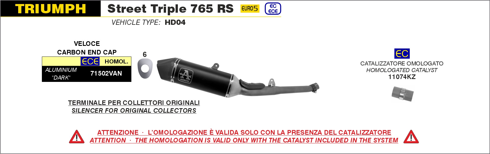 Sonstiges zum Artikel "ARROW VELOCE Aluminium schwarz TRIUMPH STREET TRIPLE 765/RS 20-22"