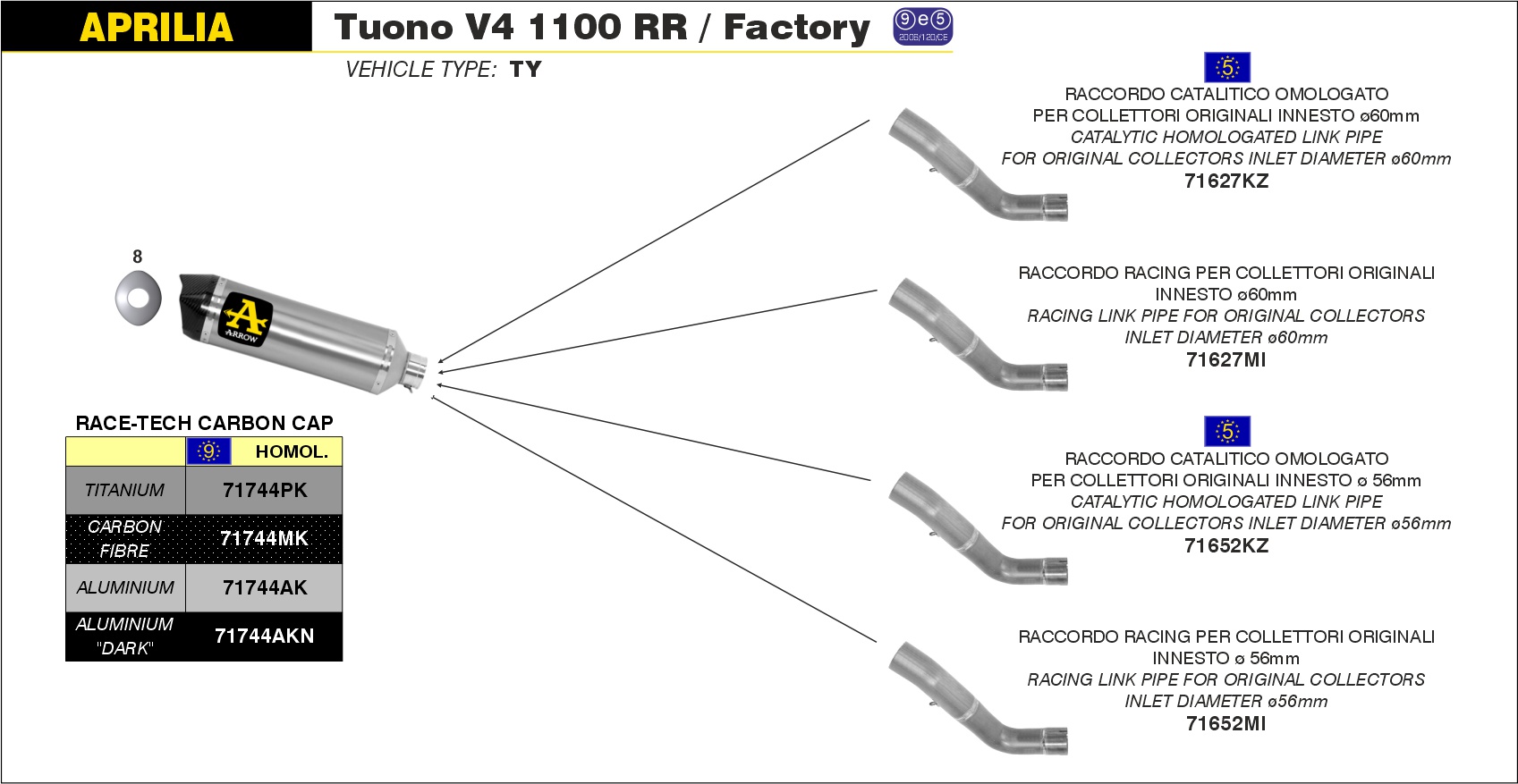 Sonstiges zum Artikel "ARROW Race-Tech Aluminium Dark Aprilia RSV 4 Factory/V4R/V4 RF/Factory -16"