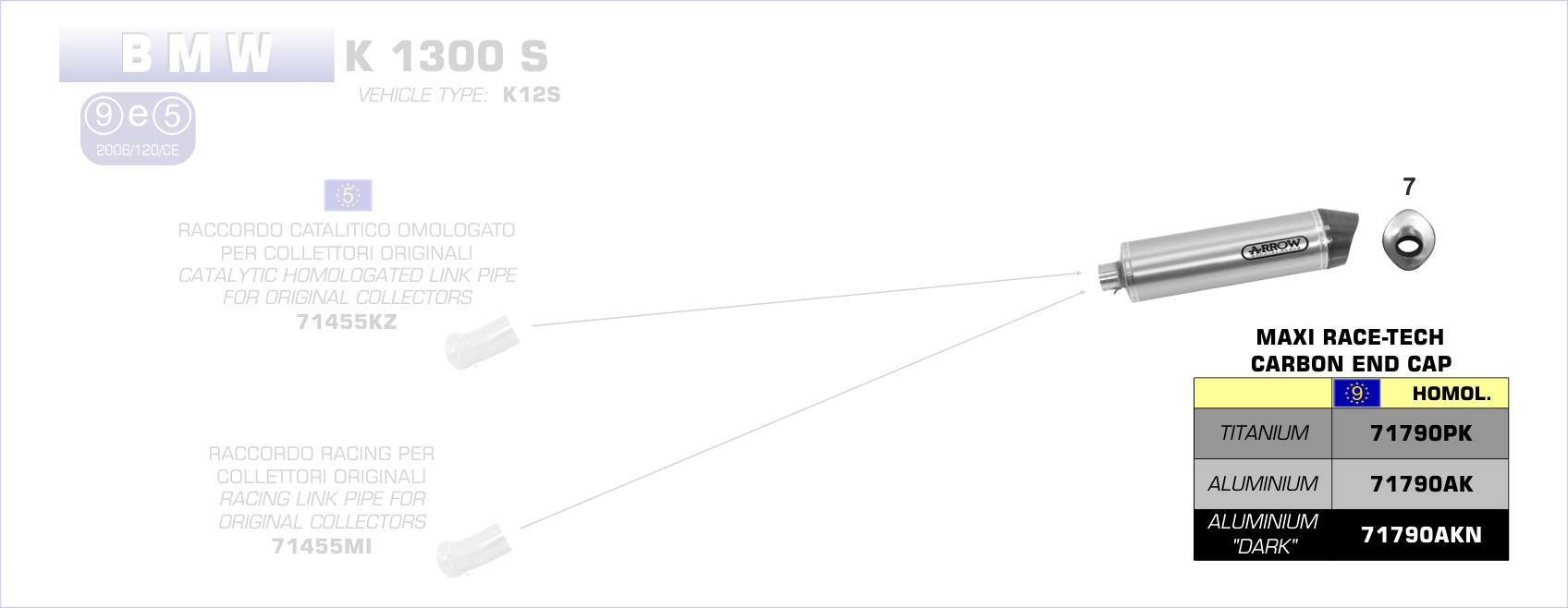 Sonstiges zum Artikel "ARROW MaXi Race-Tech titanium silencer with carby end cap BMW K 1300 S 12-16"