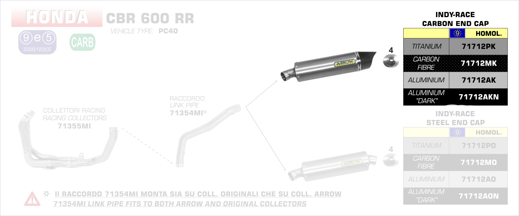 71354MI-Arrow Zwischenrohr, zentral Honda CBR 600 RR 07-08