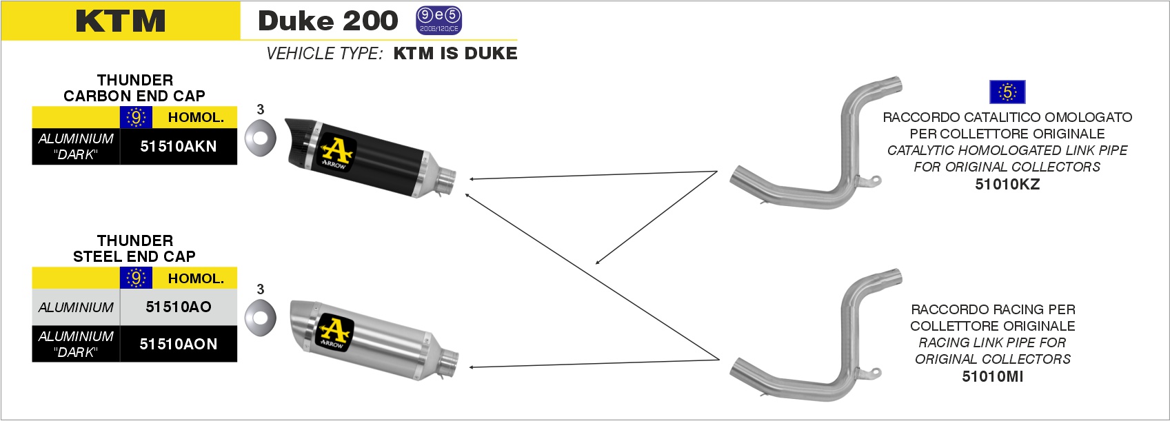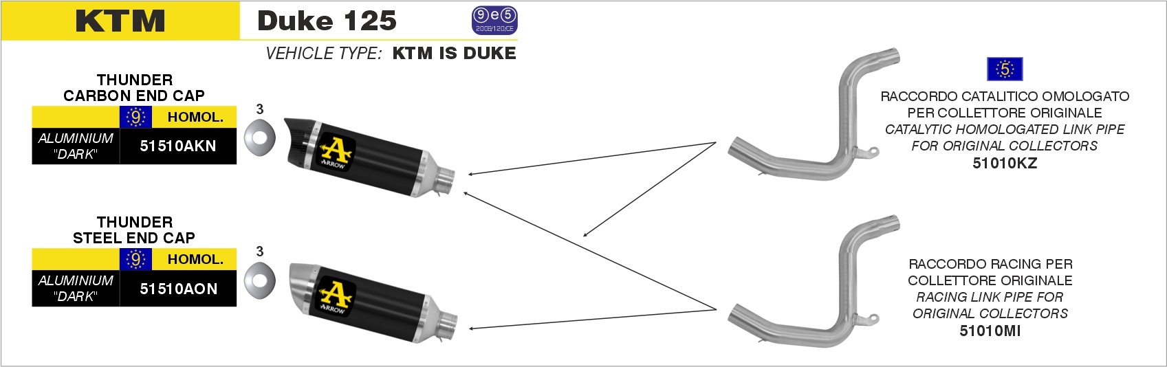 Sonstiges zum Artikel "ARROW Thunder Aluminium schwarz KTM Duke 125 11-16/Duke 200 11-14"
