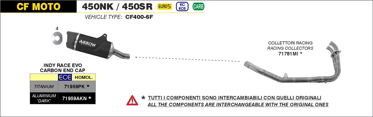 Sonstiges zum Artikel "ARROW Indy Race EVO Aluminium schwarz CF Moto 450NK / 450SR 2023-"