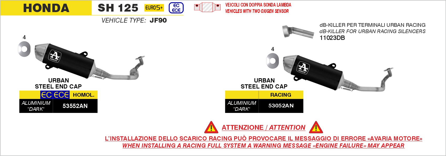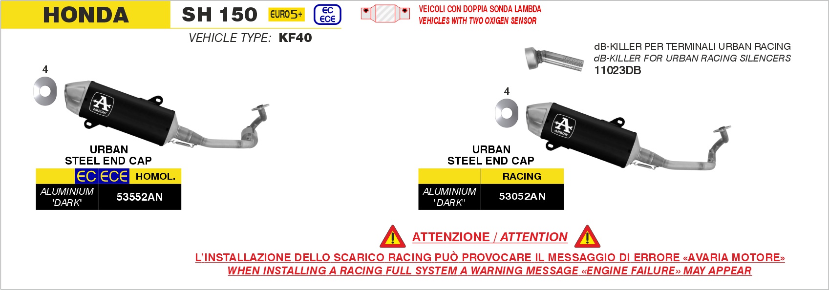 Sonstiges zum Artikel "ARROW Urban Komplettanlage Racing Aluminium schwarz HONDA SH 150 24-25"