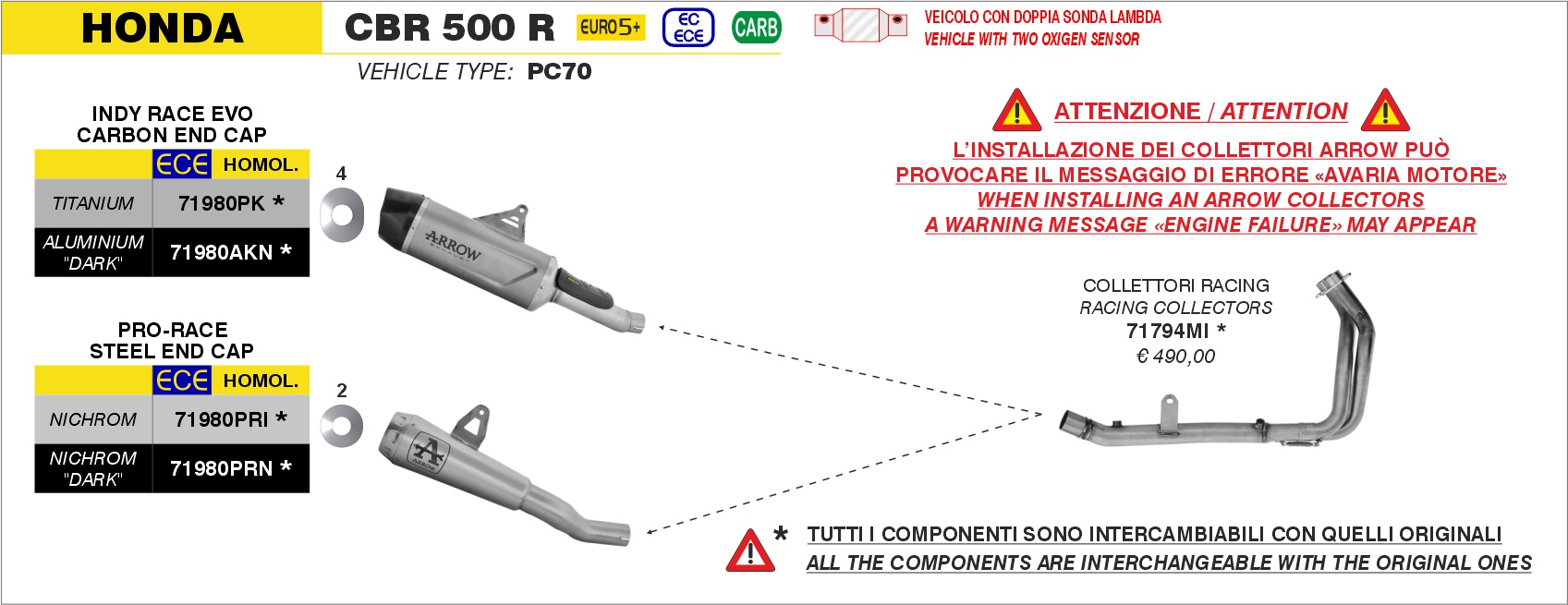 Sonstiges zum Artikel "ARROW PRO RACE Edelstahl HONDA CBR 500 R 24-25"