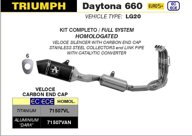 Sonstiges zum Artikel "ARROW Veloce Aluminium schwarz Racing TRIMPH Daytona 660 2024"