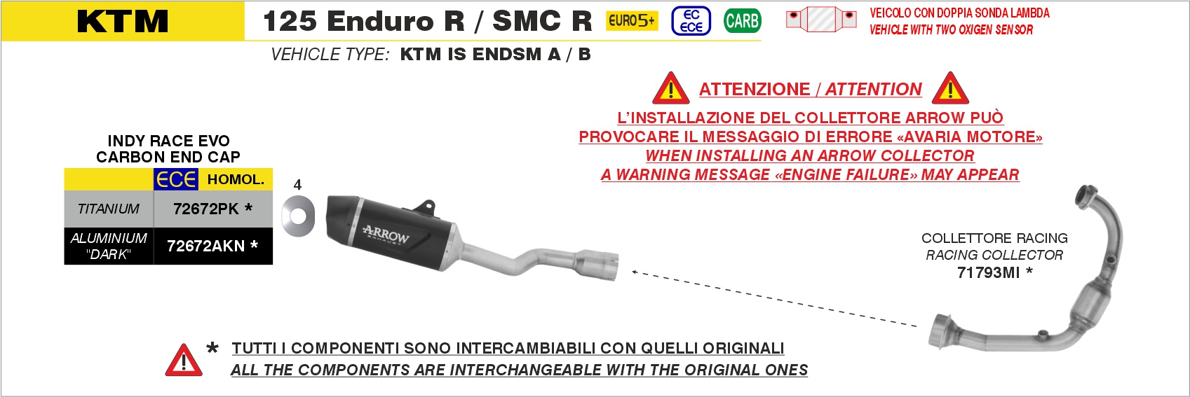 Sonstiges zum Artikel "ARROW Indy Race EVO Aluminium schwarz KTM 125 Enduro R-125 SMC-R 25-26"