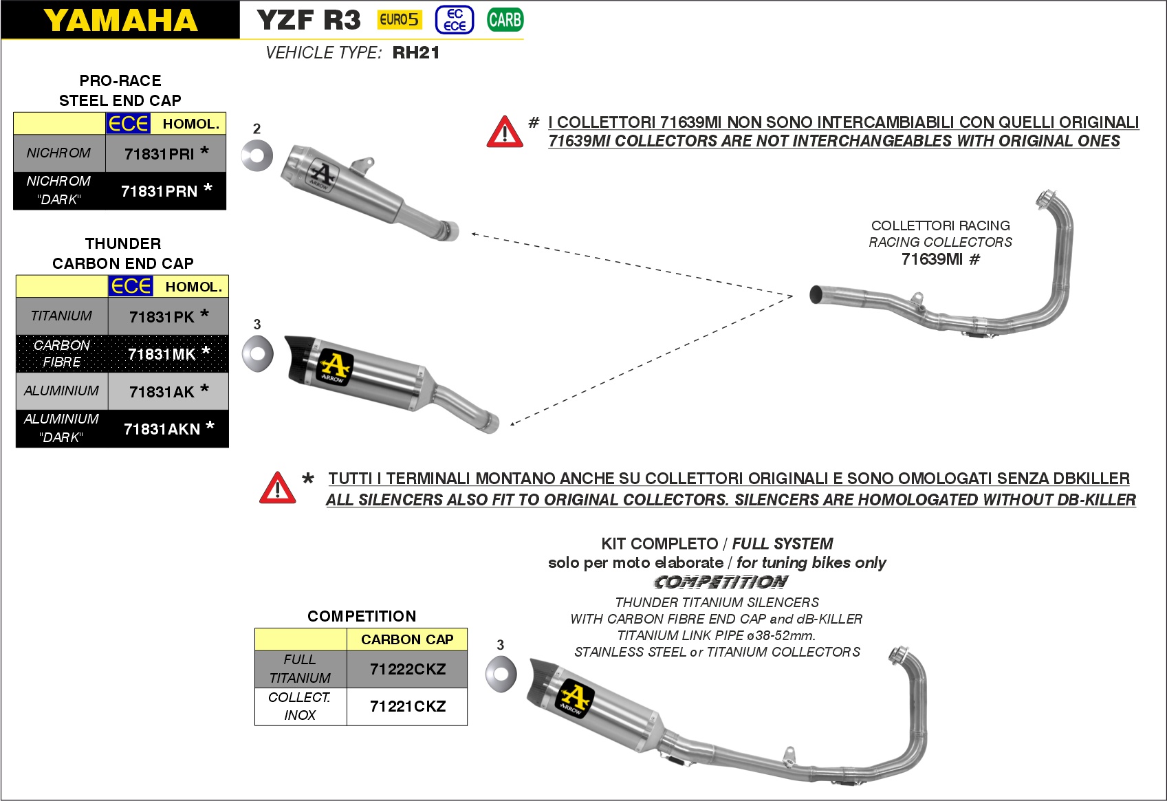 Sonstiges zum Artikel "ARROW Thunder Aluminium schwarz Yamaha MT-03/YZF-R3/ 16-23"