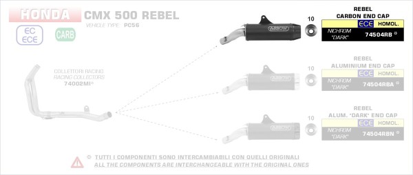 Sonstiges zum Artikel "ARROW Rebel Edelstahl Dark Honda CMX 500 Rebel 17-19"