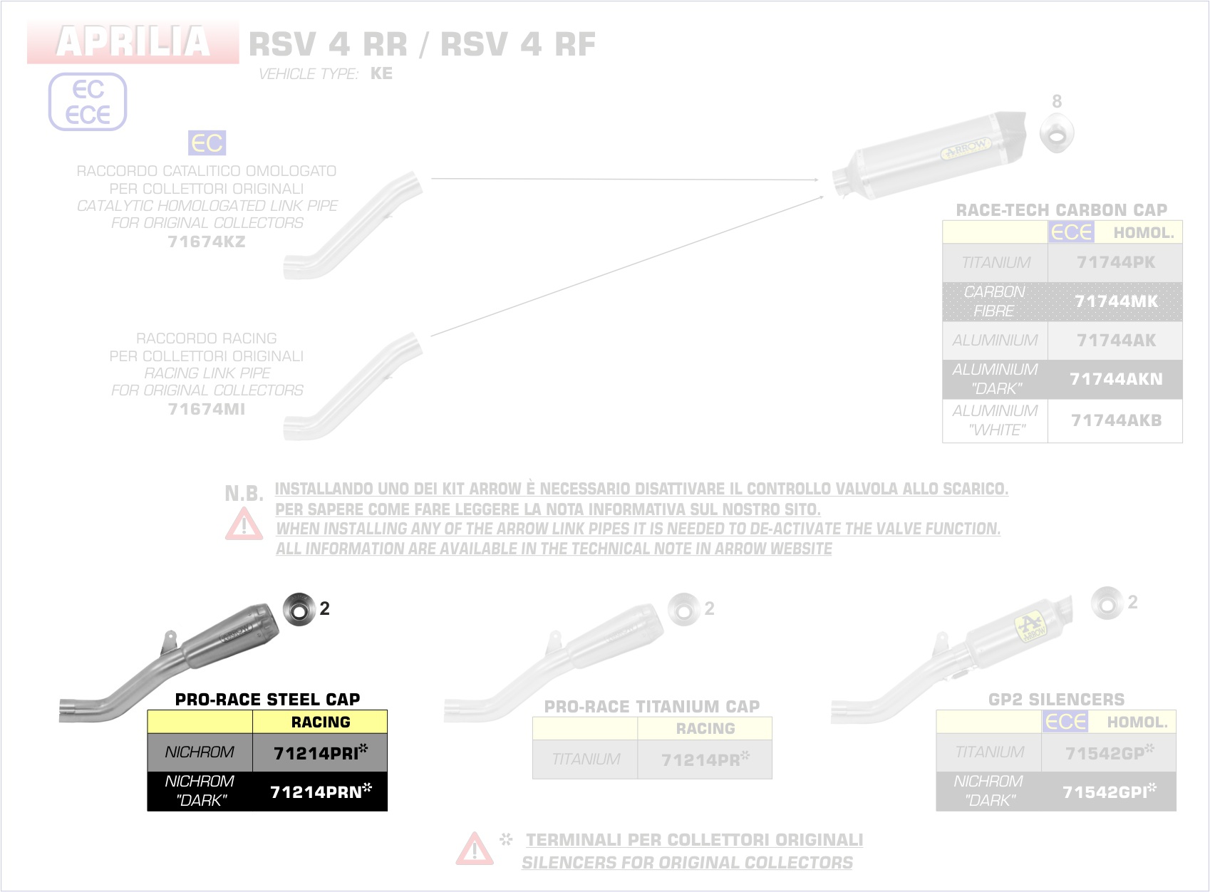 Sonstiges zum Artikel "ARROW Pro-Race nichrom Dark" silencers kit" Aprilia RSV 4 RR / RF 17-18"