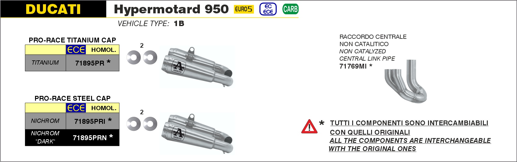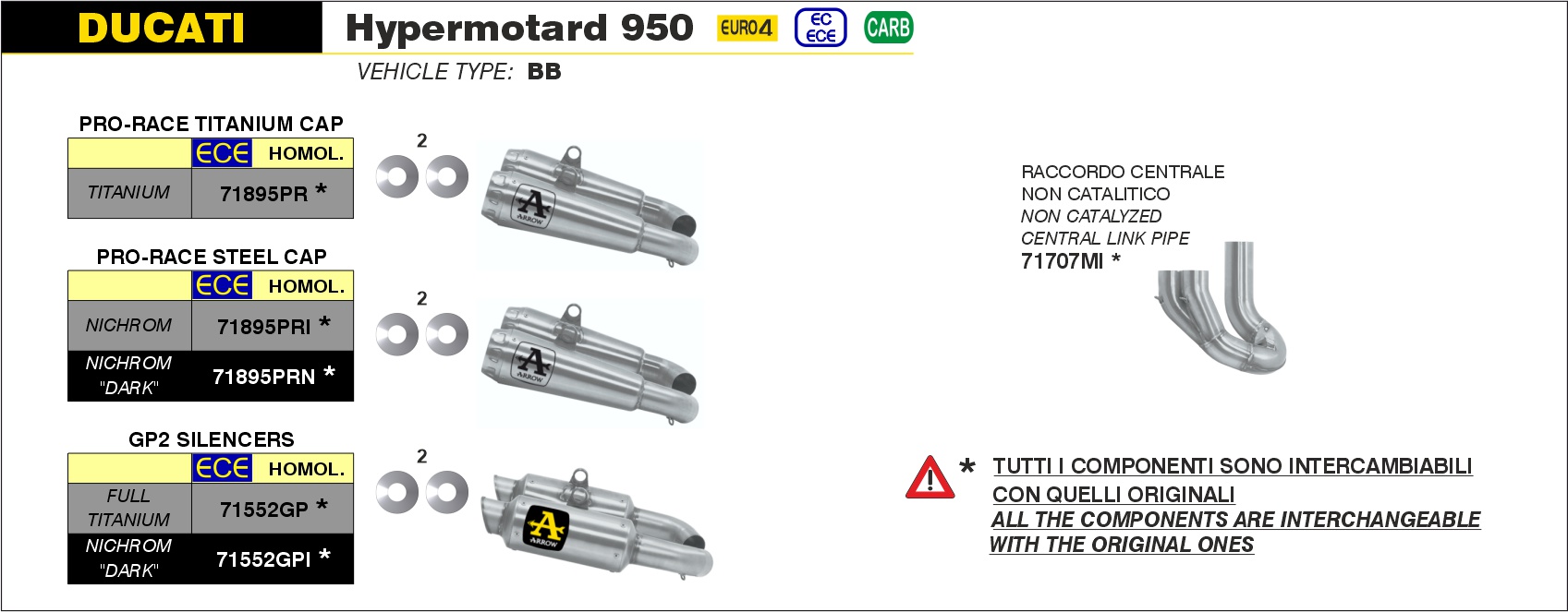 Sonstiges zum Artikel "ARROW Pro-Race Edelstahl schwarz Ducati Hypermotard 950/SP ´19 -22"
