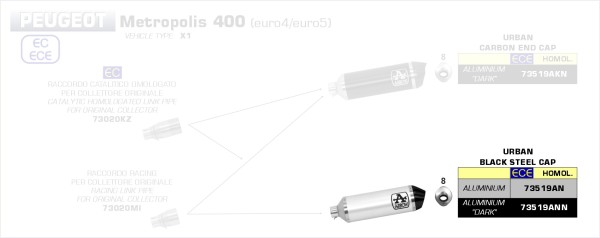 Sonstiges zum Artikel "ARROW Urban Aluminium schwarz Peugeot Metropolis 400 17-21"