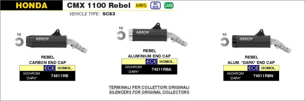 Sonstiges zum Artikel "ARROW REBEL Edelstahl schwarz mit HONDA CMX 1100 Rebel 21-22"