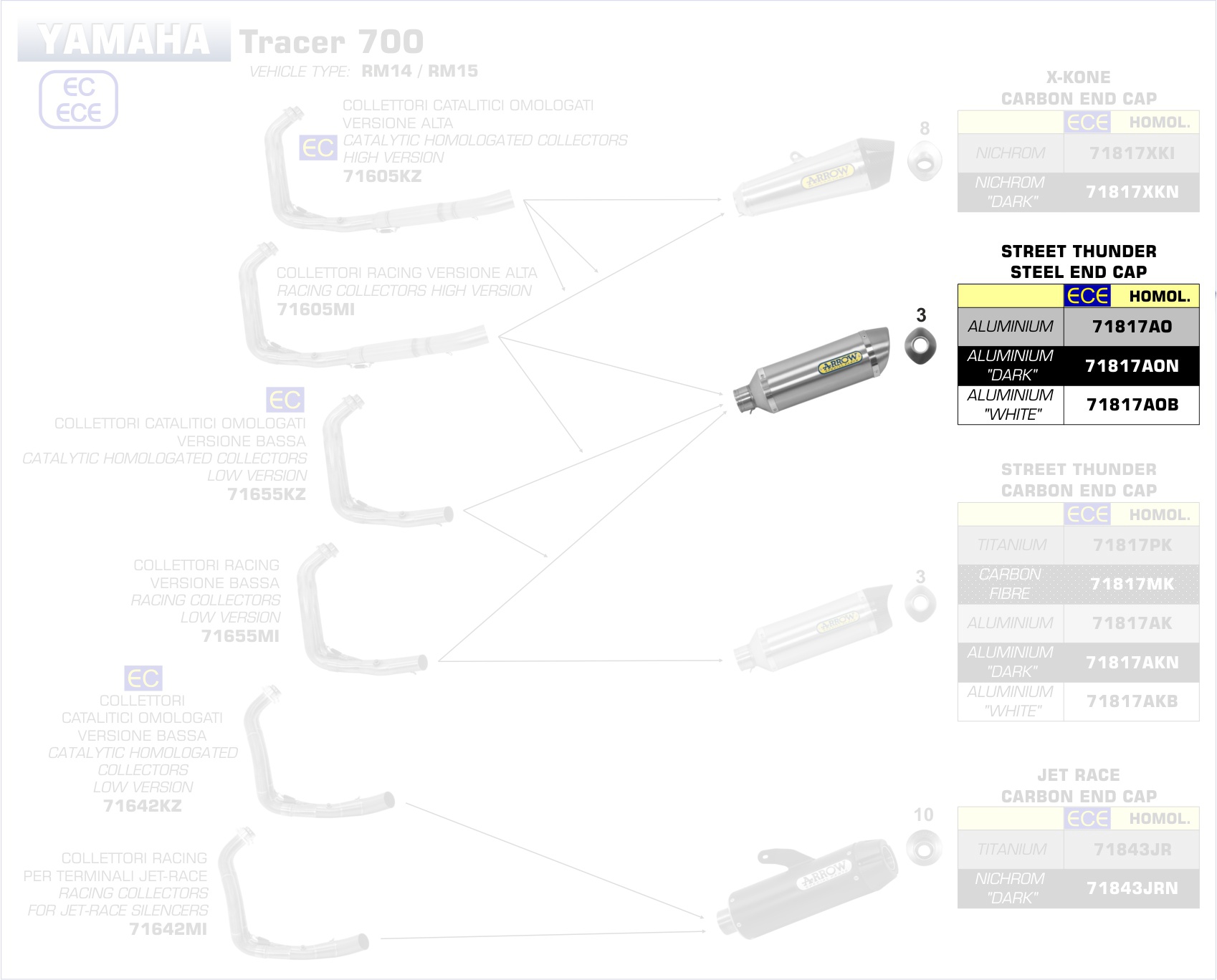 Sonstiges zum Artikel "ARROW Thunder Aluminium Yamaha MT-07 14-20- Tracer 700 16-19"