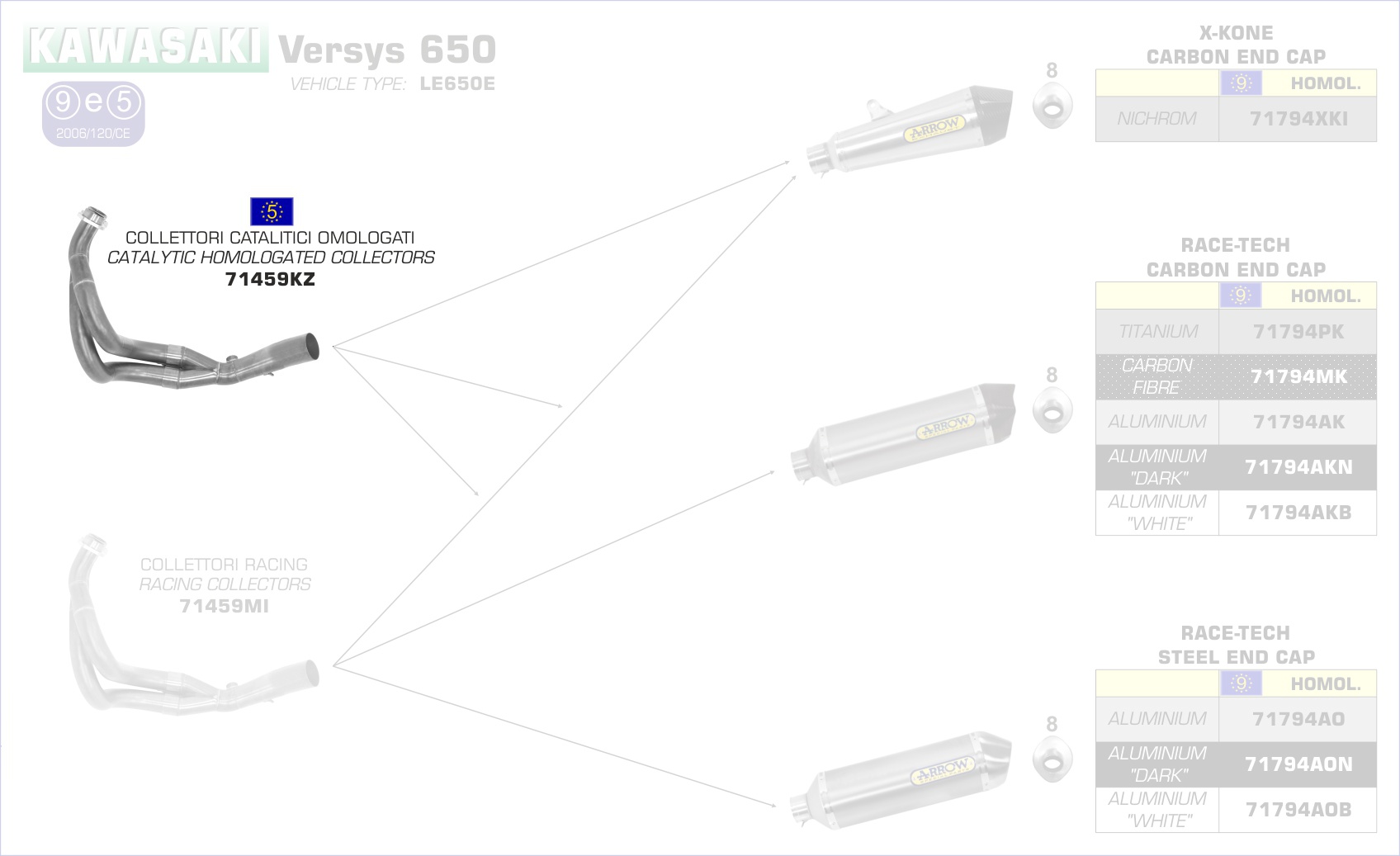 Sonstiges zum Artikel "71459KZ-Arrow Krümmer mit Kat Kawasaki ER-6N (ER 650E) `12/13/Versys 650 ´15"