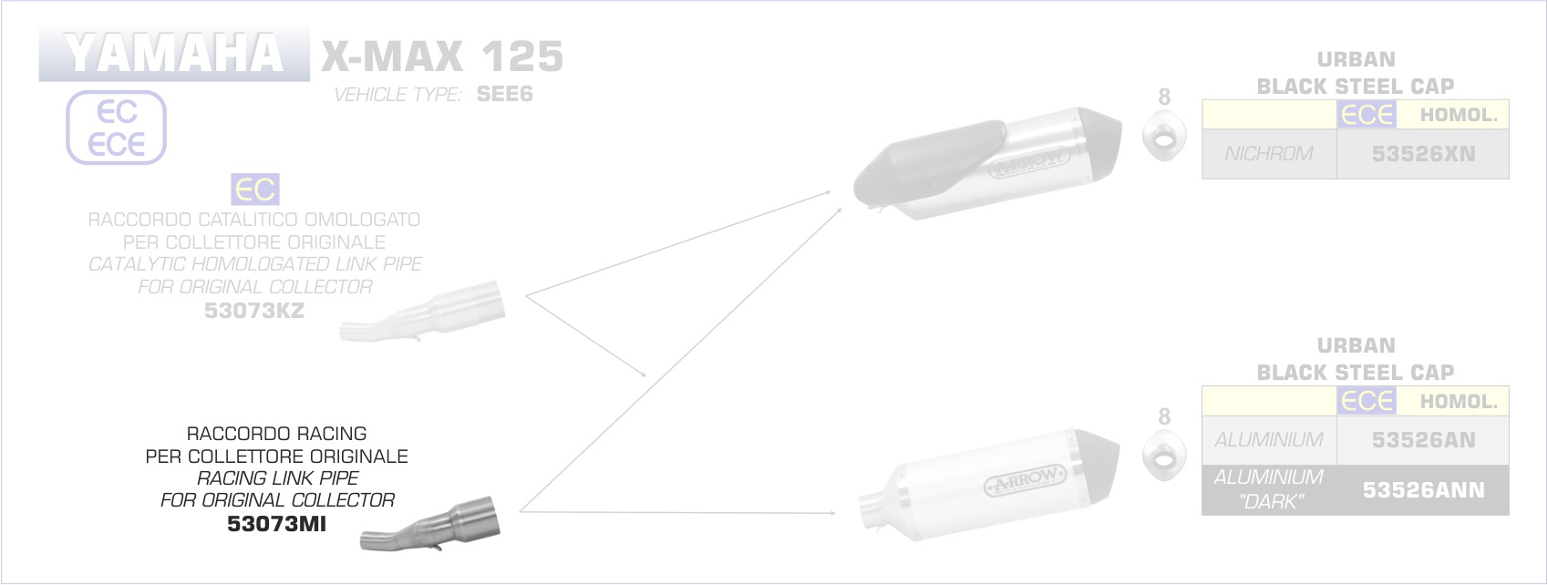 Sonstiges zum Artikel "Arrow Verbindungsrohr ohne Kat Yamaha X-MAX 125 18-20"