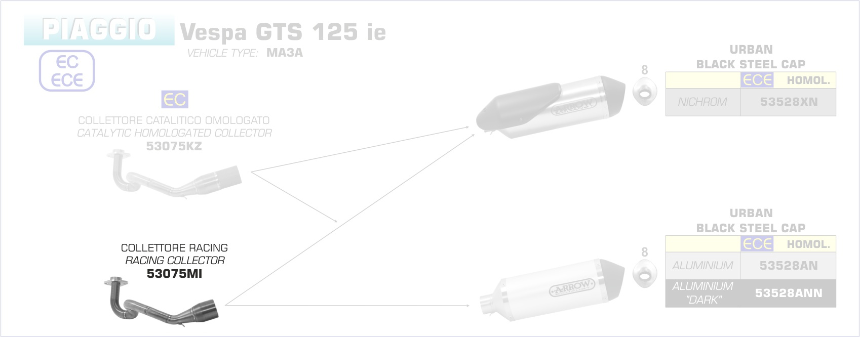 Sonstiges zum Artikel "Arrow Krümmer ohne Kat Vespa GTS 125 17-18"