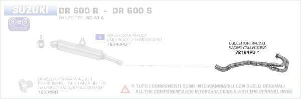 Sonstiges zum Artikel "72124PD-Arrow Racing Krümmer Suzuki DR 600 R/S 85-90"