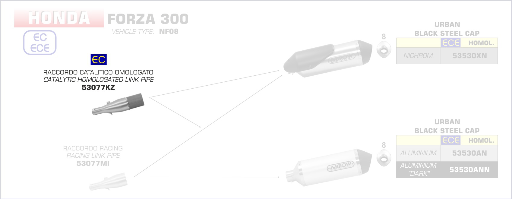 Sonstiges zum Artikel "53077KZ-Arrow Verbindungsrohr mit Kat HONDA FORZA 300 18-19"
