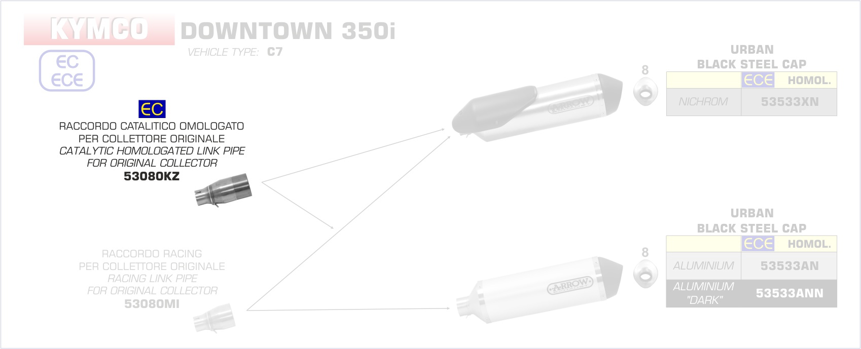 Sonstiges zum Artikel "53080KZ-Arrow Verbindungsrohr mit Kat Kymco Downtown 350i 16-19"