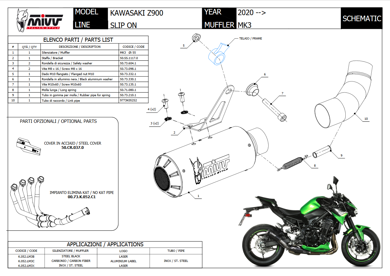 Sonstiges zum Artikel "MIVV MK3 Edelstahl schwarz Kawasaki Z 900 20-24"