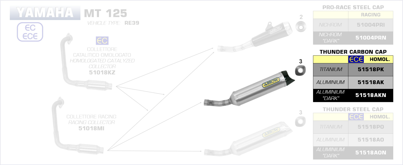 Sonstiges zum Artikel "ARROW Street Thunder Aluminium Yamaha YZF-R 125 19-21/MT 125 20-"